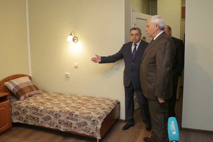 Первые лица города и района осмотрели квартиры, в том числе номера для студентов с ограниченными возможностями. Все комнаты рассчитаны на проживание максимум трех человек, обставлены новой мебелью, есть холодильник, микроволновая печь. Также гости посетили современные спортивный и компьютерный залы, прачечную со стиральными и сушильными машинами и принадлежностями для глажки белья, кухню, гостиничный номер для прохождения практики.